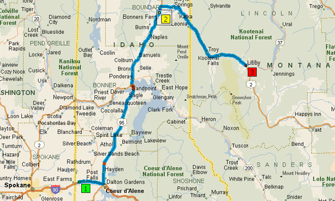 Map 60, Post Falls Idaho to Libby Montana, about 140 miles.